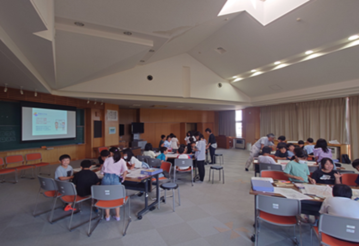 コメント謎解きウォークのガイダンス。 6班に分かれて地図について学び、今昔の地図を比べるワークショップを行い発表しました。