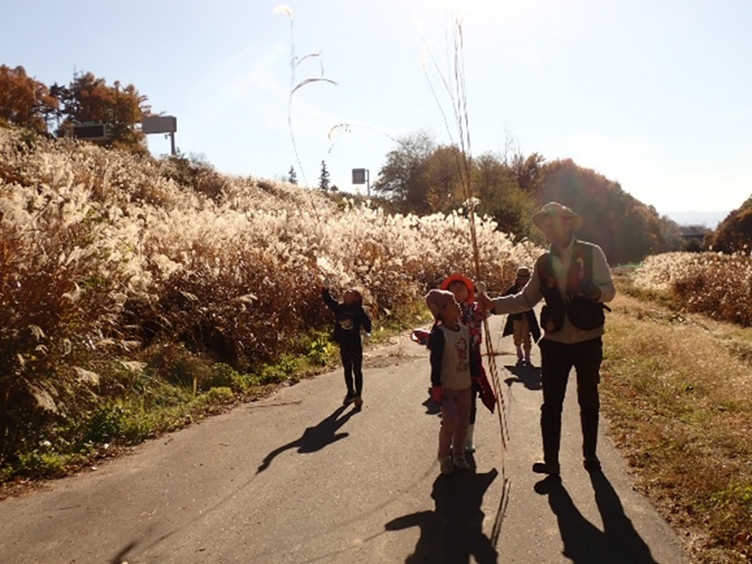 午後は、ビオトープを散歩して、ススキの穂を集め、ほうきを作りました。