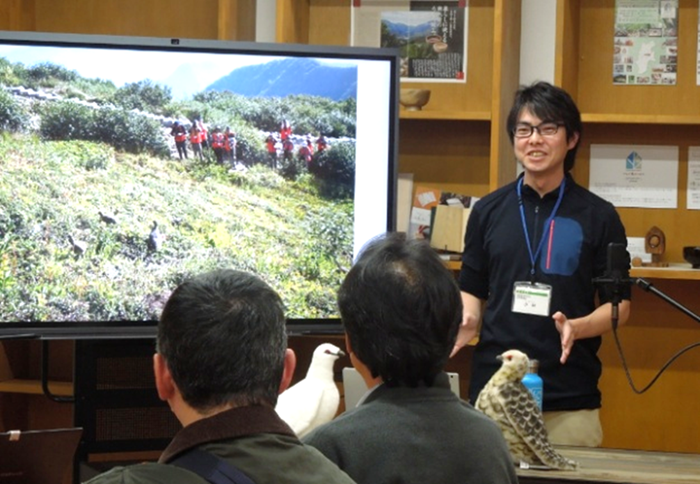 これからは登山者が収集したライチョウの情報が、保全の基礎データとなる未来が近づいていることを紹介しました